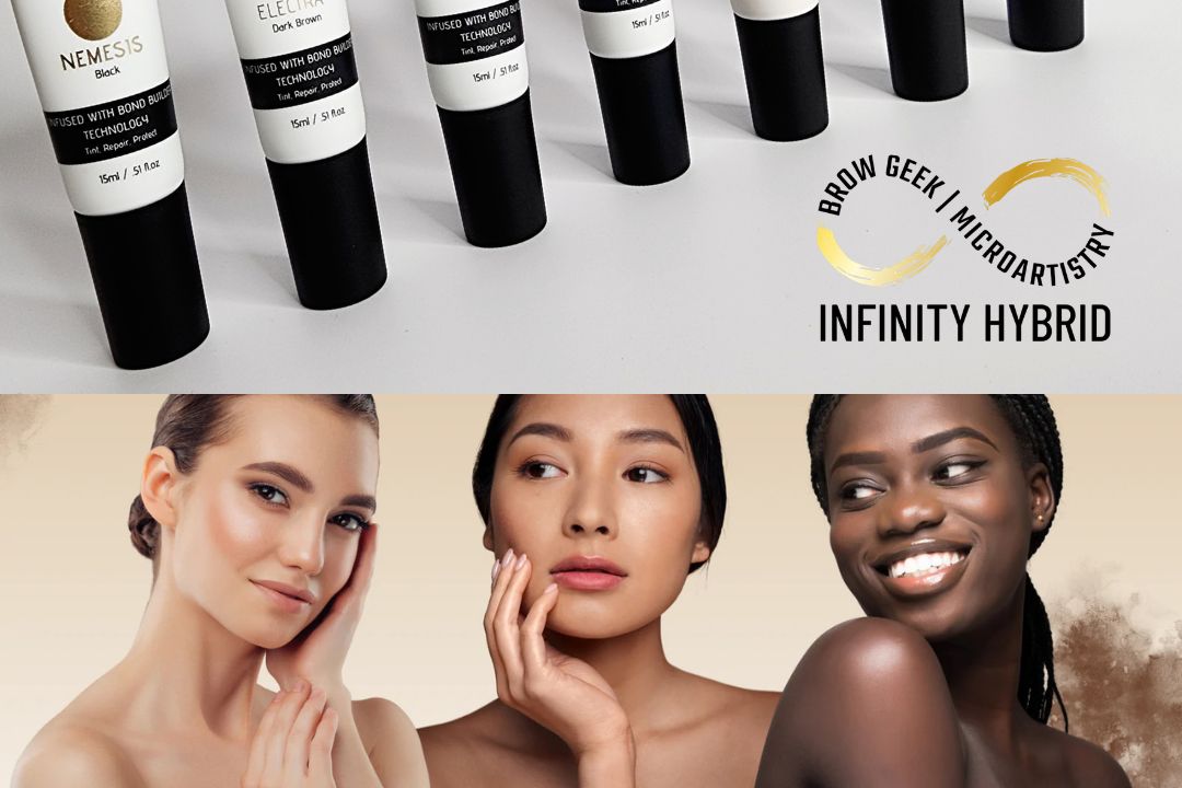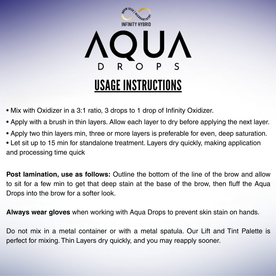 Aqua Drops offers a hybrid skin stain and brow hair tint, treating brow hairs to create a deeper, more realistic result. It's a skin stain like henna, but the brow hair tint is like traditional color!